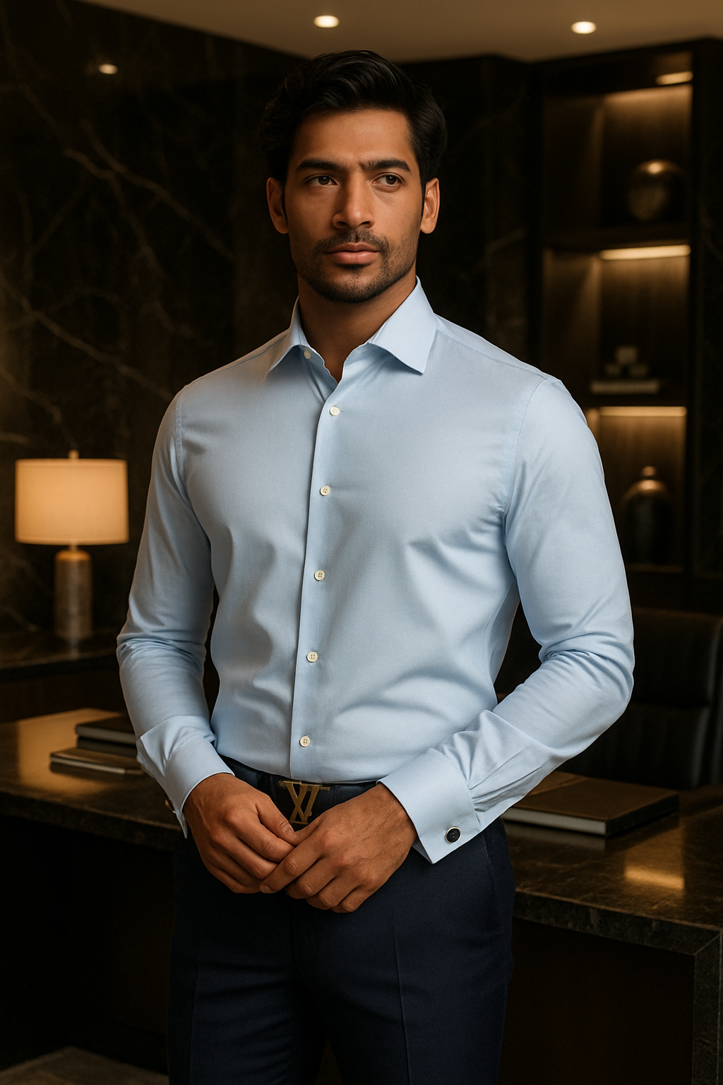 “Refined Sophistication: Classic Blue Shirt Elegance for the Modern Gentleman”