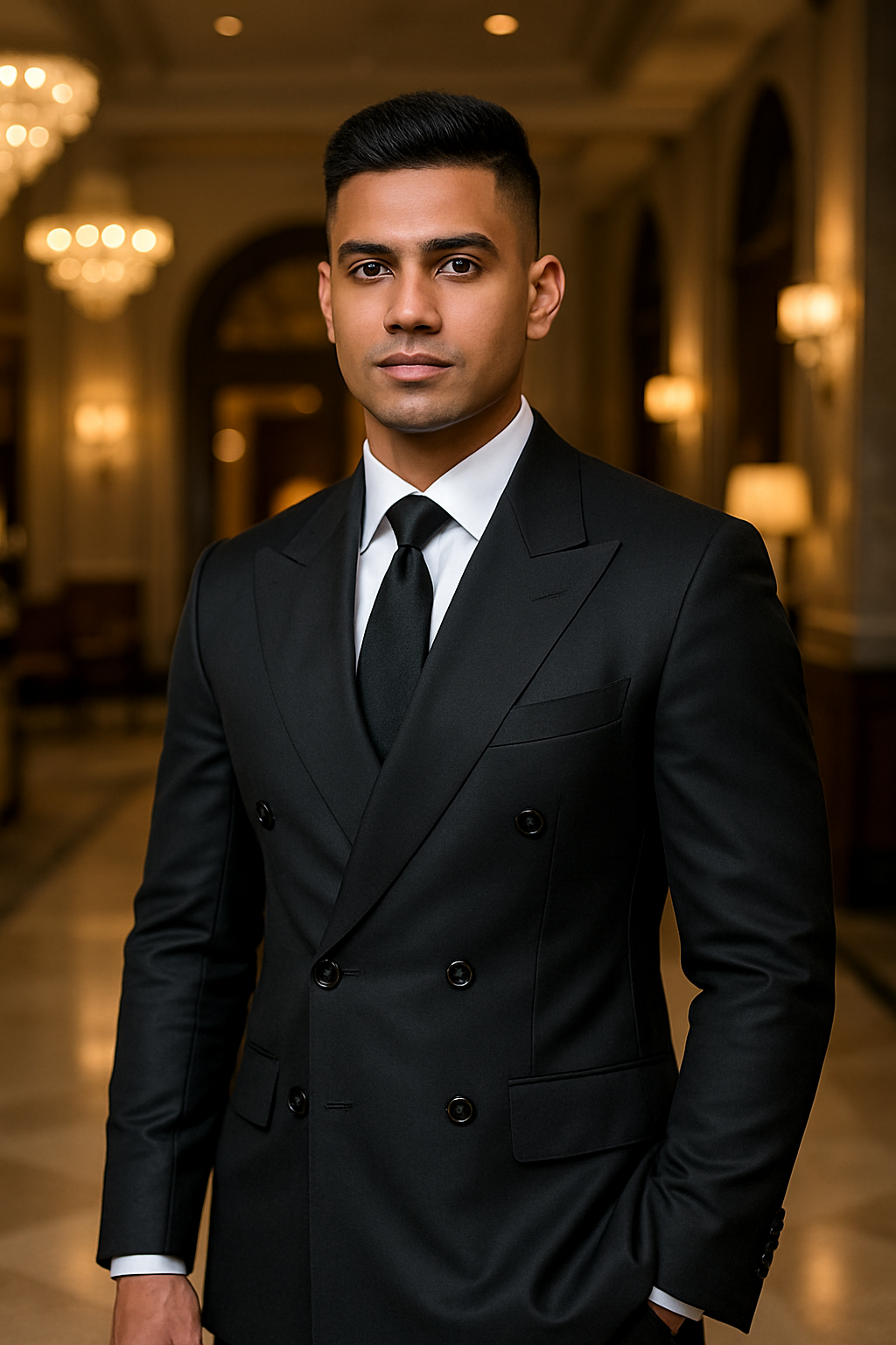 Classic Black Double-Breasted Suit with Peak Lapel